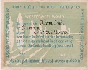 Mijn vader vertelde dat meneer Mozes het ware joodse handelsbloed in zijn aderen had stromen. Dat werd geïllustreerd met een voorbeeld. De eerste keer dat meneer Mozes zich weer vrij op straat kon begeven, kwam hij thuis met een kaartje waar een prachtig spotgedichtje op stond over de nederlaag van Hitler. Hij wist binnen de kortste keren dat kaartje te vermenigvuldigen en aan de man te brengen voor een paar dubbeltjes. Mijn vader snapte nooit hoe hij dat zo snel voor elkaar kon krijgen om zo’n handeltje op te zetten.