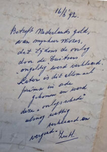 Uit een brief gericht aan Harm Smit, van 21 juli 1949, blijkt dat Piet Mozes een aanvraag heeft ingediend bij de Generale Thesaurie. Tijdens de Tweede Wereldoorlog werd het geld van Joden ongeldig verklaard. Na de oorlog konden Joden een verzoek indienen om dat geld vergoed te krijgen en ook Piet Mozes heeft zo’n verzoek ingediend.