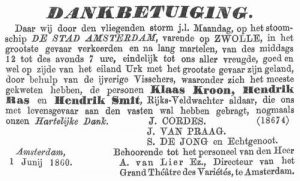 Advertentie uit het Nieuw Amsterdamsch Handels- en Effectenblad van 4-6-1860, waaruit het goede gedrag van Hendrik Smit blijkt.