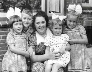 Lijsebet Gerssen-Kramer is een dochter van Lubbertje Kramer en Marretje Loosman. Hier op de foto met haar vier oudste kinderen Johannes, Marretje, Trijntje en Anna.