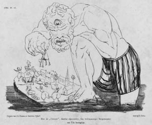 Spotprent over het inzetten van de Cycloop. (collectie Rijksmuseum)