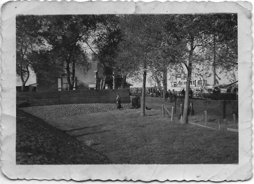 Prachtige foto met in het midden de visafslag en met rechts daarvan de woning van de familie Smit. De aangebouwde wachtkamer “voor het telefonerende publiek” is met een beetje goede wil te onderscheiden.